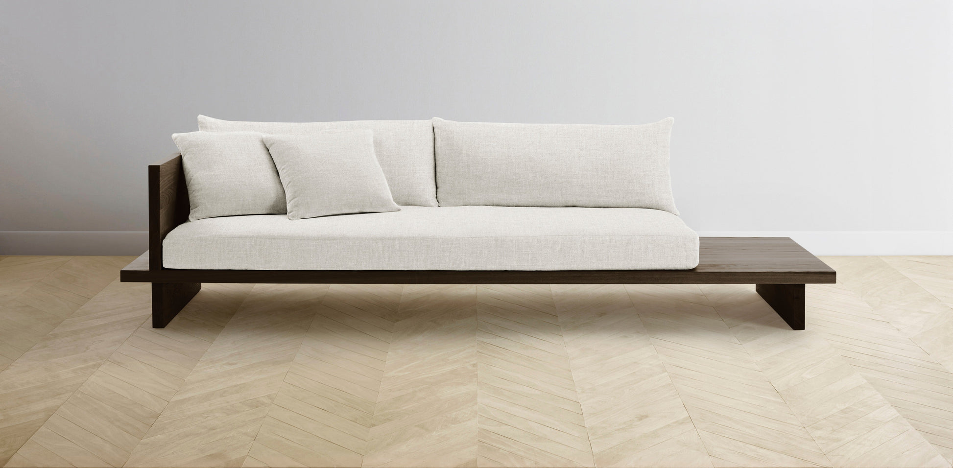 The Muir Arm on Left - Belgian Linen Egret Sofa