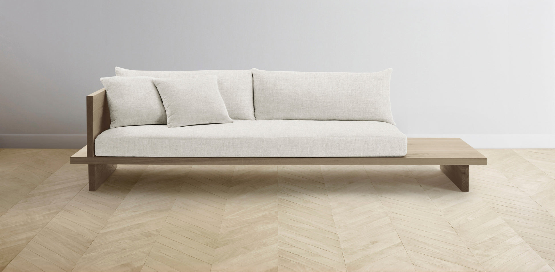 The Muir Arm on Left - Belgian Linen Egret Sofa