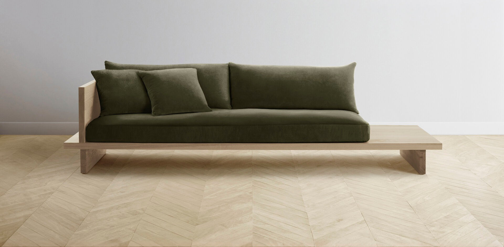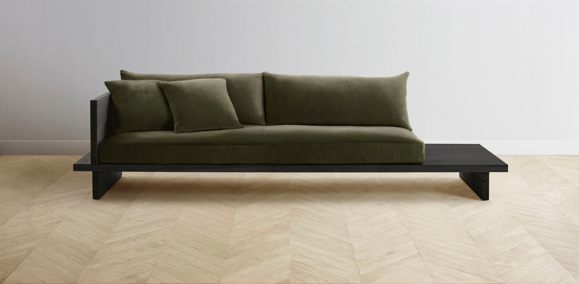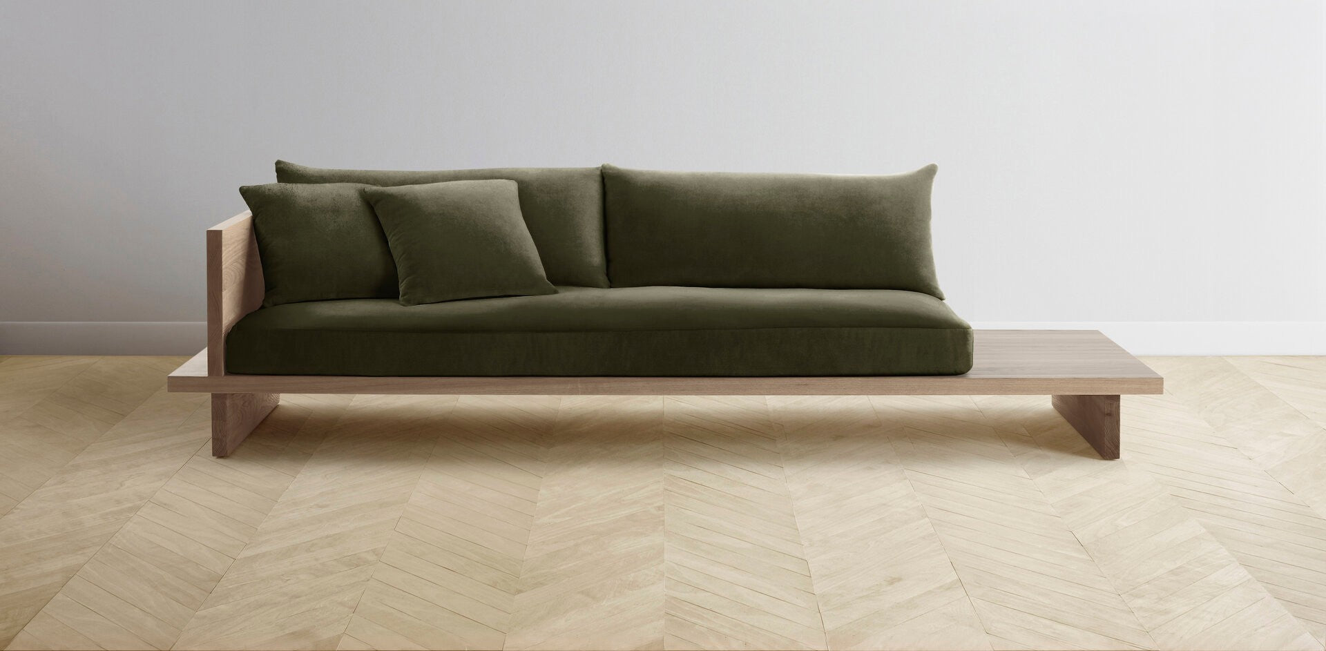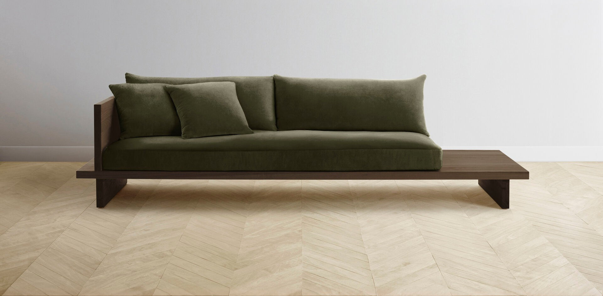 The Muir Arm on Left - Performance Velvet Olive Sofa